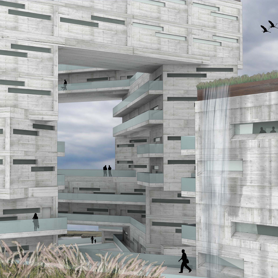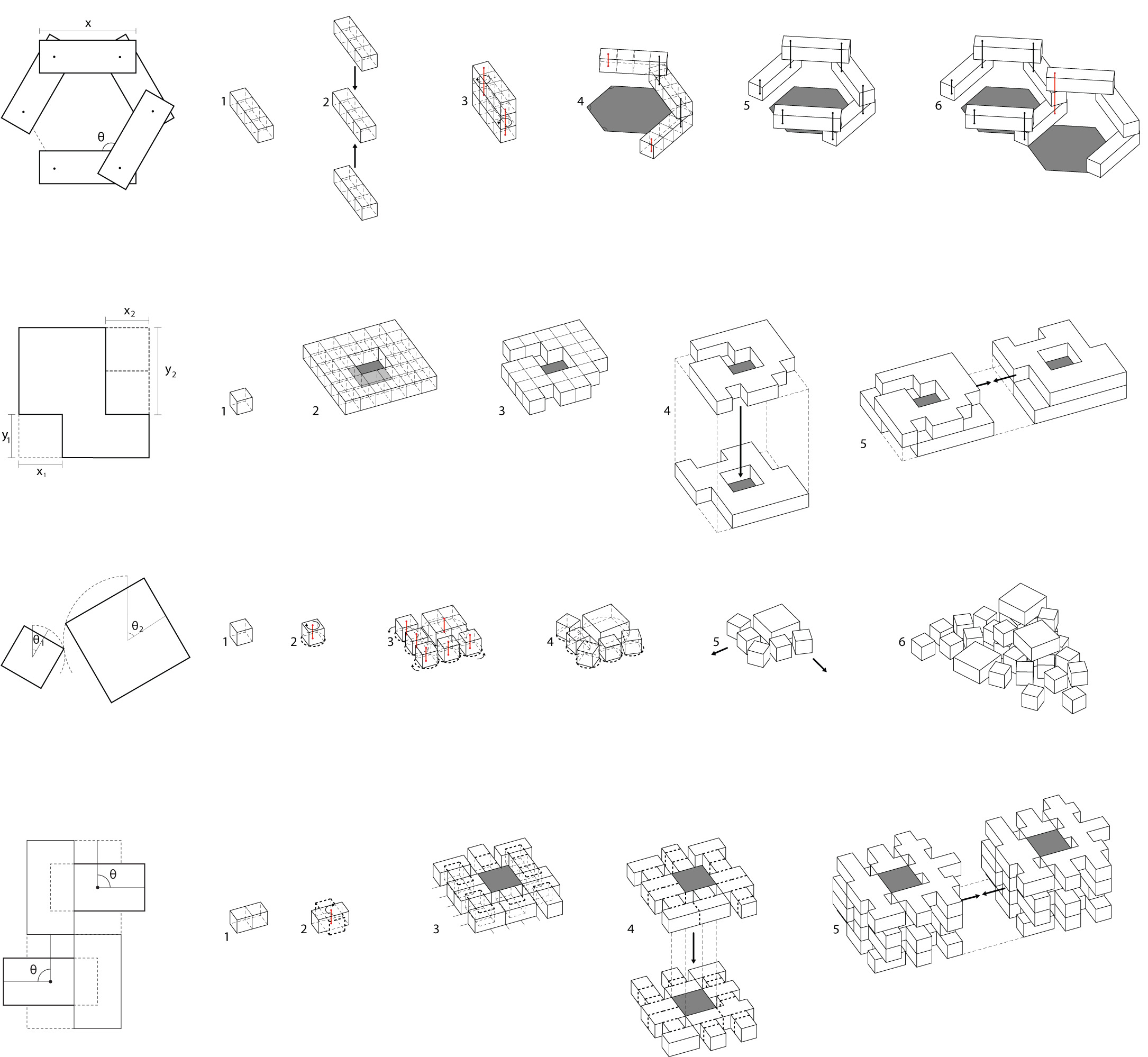 To evaluate potential scales and qualities of urban organization, the aggregate building type was considered and subdivided in to eight unique formal actions: pivot, link, branch, scatter, stack, excavate, spiral, and step. A hybrid aggregate type, stacking link, was investigated in detail at the scale of the block, the super block, the district, and the city.