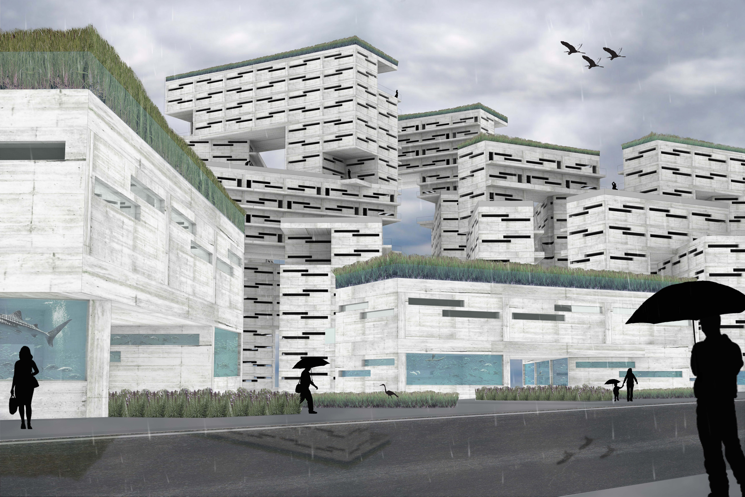 The trend of designing cities from zero fosters visionary conceptions of the urban environment. An absence of contextual cues enables the re-imagination of urban development and lifestyle. KPF’s New Songdo City master plan and research was utilized as a starting point to investigate novel urbanization strategies.