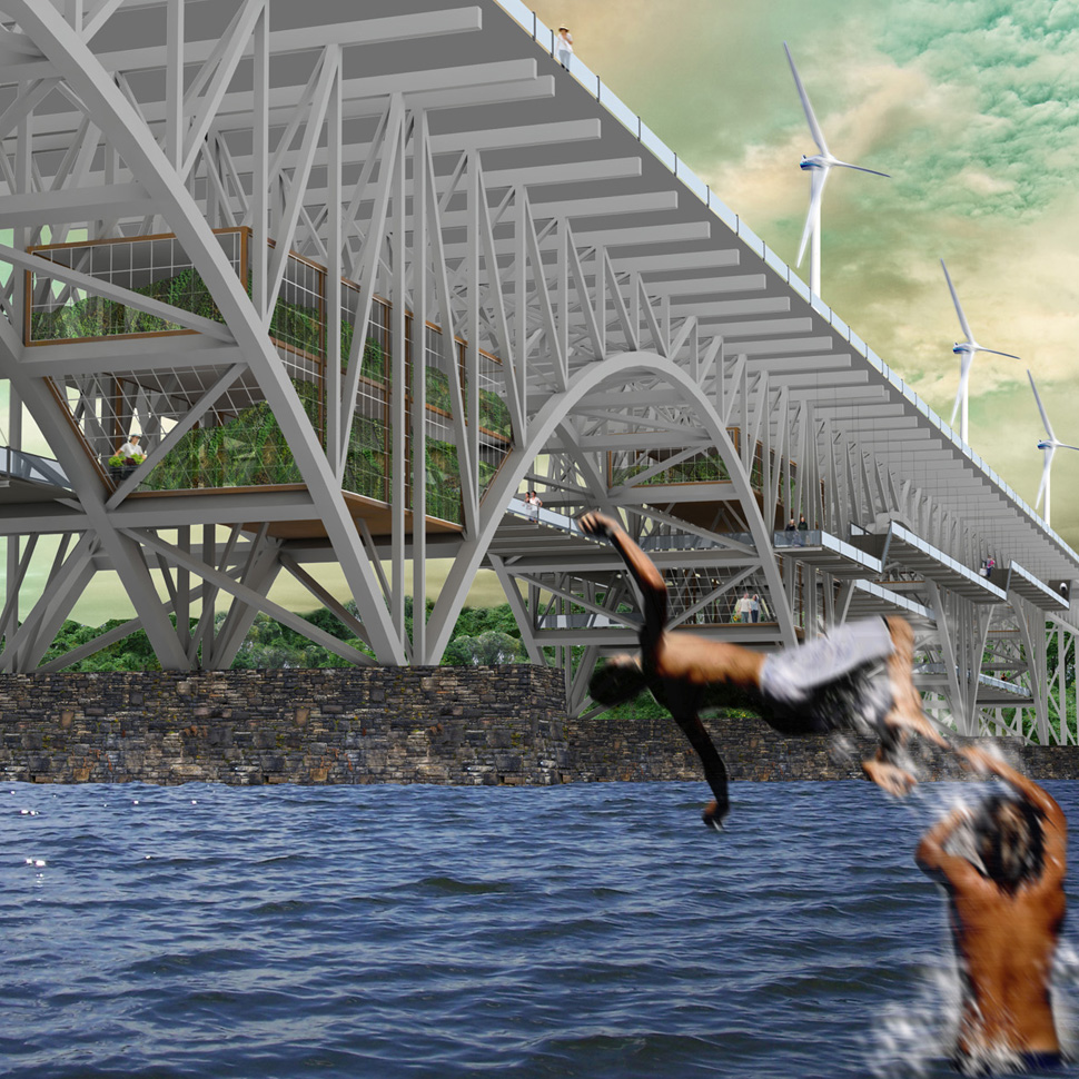 Infrastructure has the potential to function socially, aesthetically, and ecologically. New collaborative typologies of infrastructure and landscape should address the urban conditions of public transit, pedestrian movement, water management, economic development, and recreation.Taking cues from the successful Schuylkill River Trail Loop, the RAIL proposal introduces a second loop which runs through and around Fairmount Park, connecting high vacancy regions with prosperous regions. The loop is a linking armature for a network of hybrid green spaces.