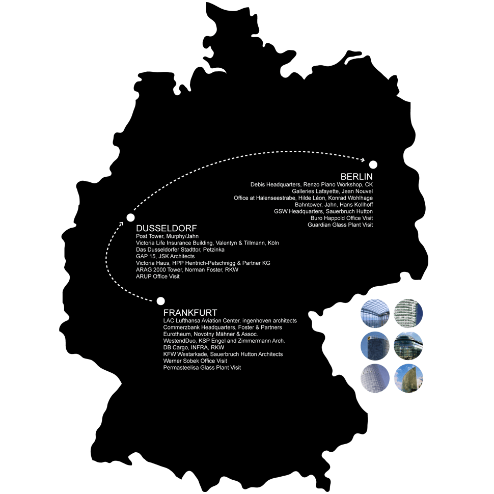 SkinNY intends to study German examples of double skin facades to gain insight on how US designers can overcome the above mentioned obstacles, with particular emphasis on early phase integrated design and life-cycle cost assessment. The two week travel proposal includes visits to three cities Frankfurt, Dusseldorf, and Berlin, with the intention to review double skin facade precedents, meet with facade consultants, and visit glass manufacturing facilities.